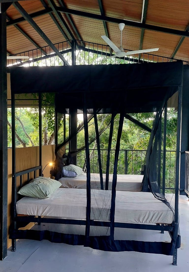 Our hostel blends a jungle vibe with a tented tree house, kind of atmosphere to maximize you wildlife experience. The dorm rooms give you a vista of the Yala National Park which is right next door. We have tried to make wildcat a extension of the Yala National park. Every corner of Wildcat Hostel connects you to the rhythm of the forest.
