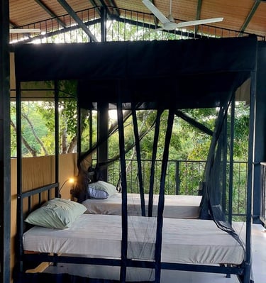 Great hostel very unique, feels like you are sleeping outside but in a comfortable bed. Waking up to Yala national park, very beautiful view. Cool swimming pool with the national park in front. If you are lucky you may see the Elephants. Breakfat included and other delicious Sri Lankan food if requested. Owners very helpful, friendly and knowledgeable of the area, thanks :)